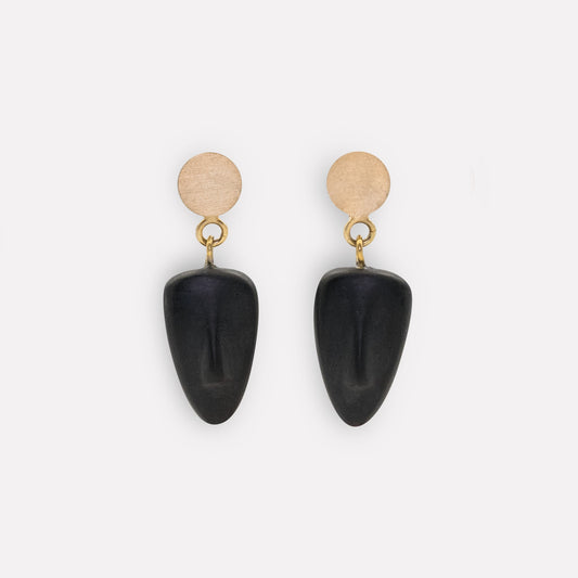 CIRCE - Cycladic idol | Black Stone & Gold Plated Silver Earrings