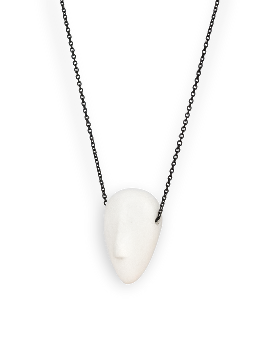 PENELOPE - Cycladic idol | White Marble & Rhodium plated Necklace