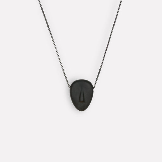 CALLIOPE - Cycladic idol | Black Stone & Rhodium plated Necklace