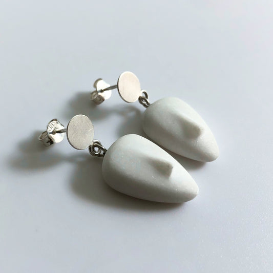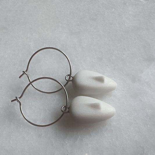 ERATO - Cycladic idol | White Marble & Silver Earrings